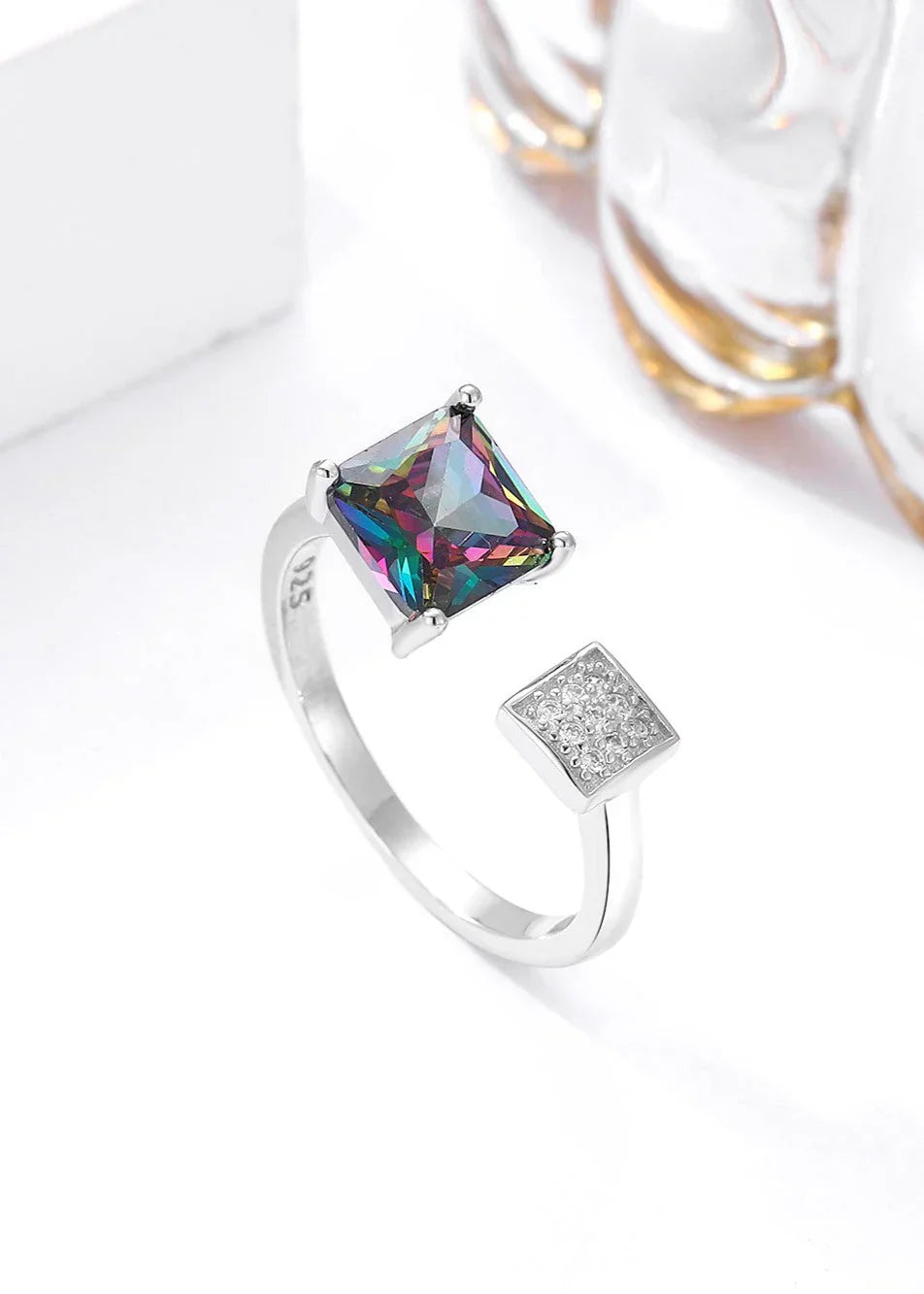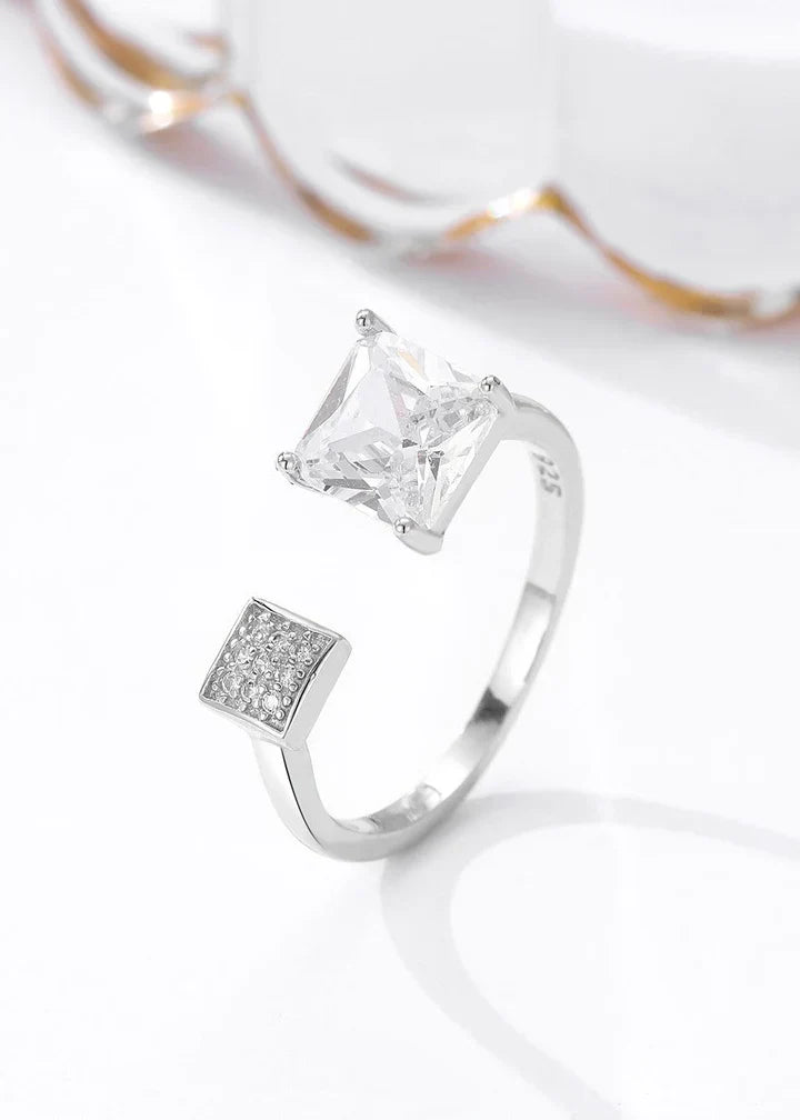 Light weight ring with sterling silver finish square shape with center opening, giving the ring a unique craftsmanship and style.